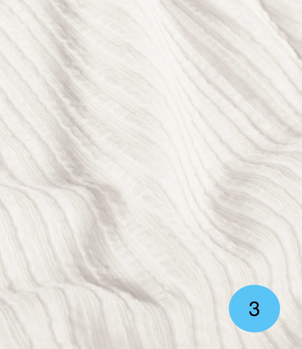 ✨ Morbido, leggero e pieno di movimento. Questo tessuto a maglia con righe stropicciate unisce comfort e stile...
